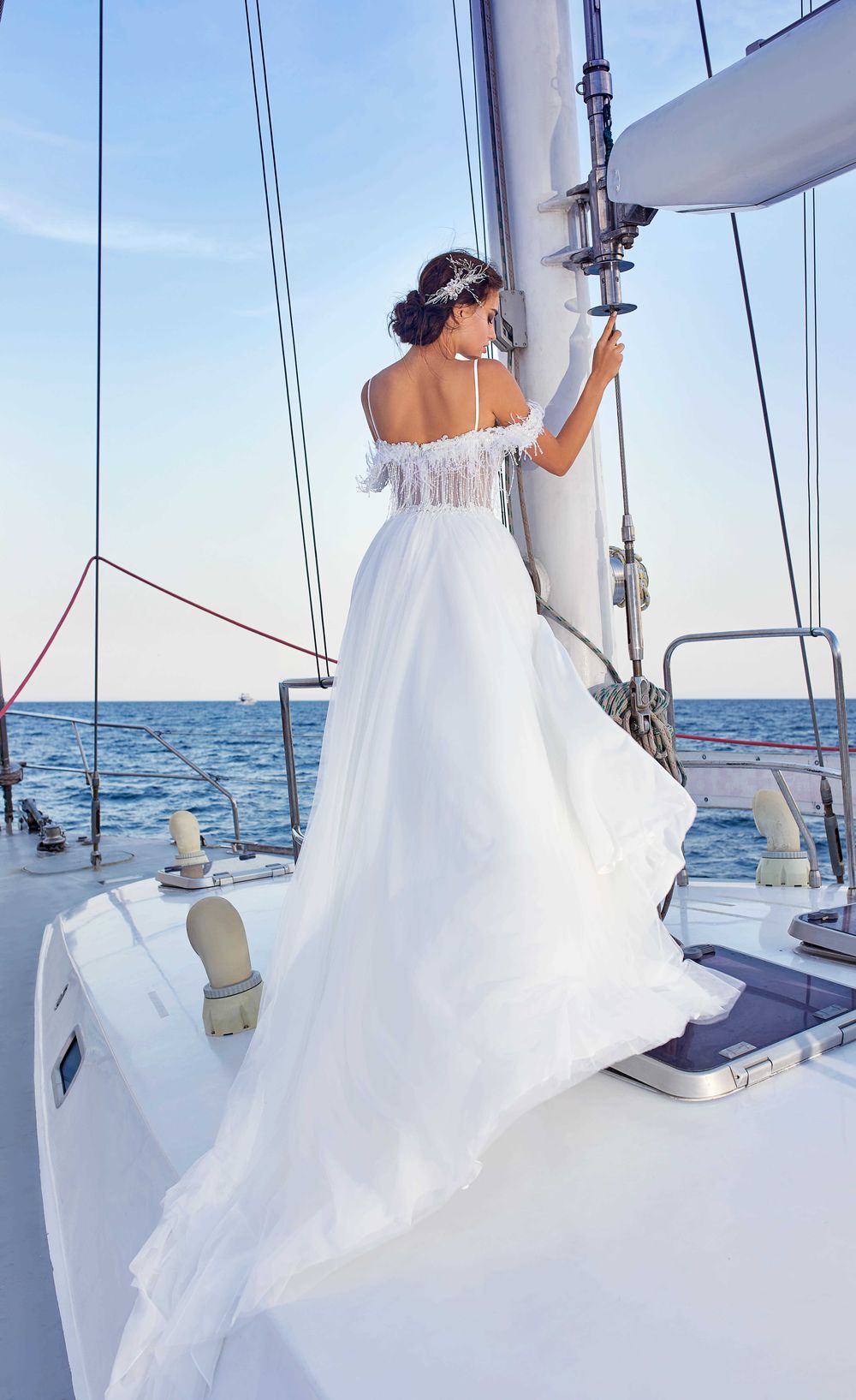 Dress with an air skirt with a spacer and a trio decor: sequin, feathers and fringe