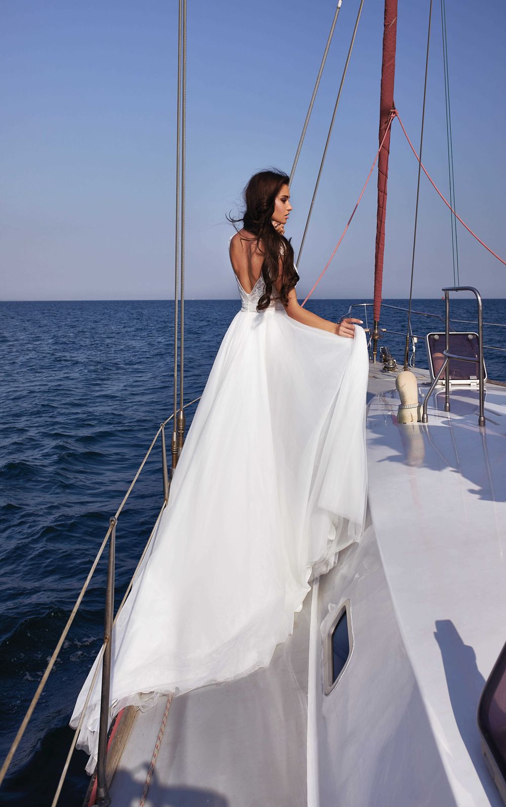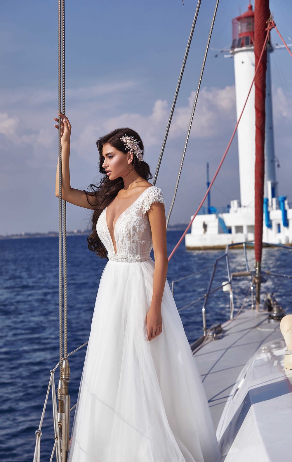 The main thing in this model is floral motifs throughout the bodice of the dress. In combination with a deep V-neck, it is wonderful