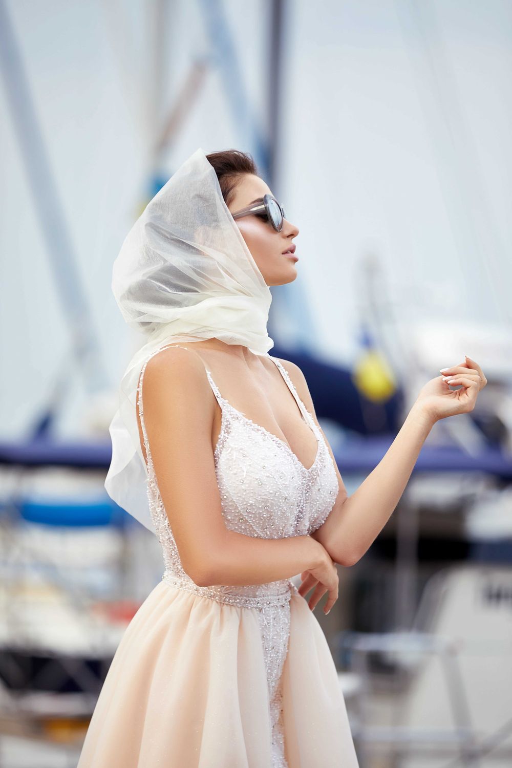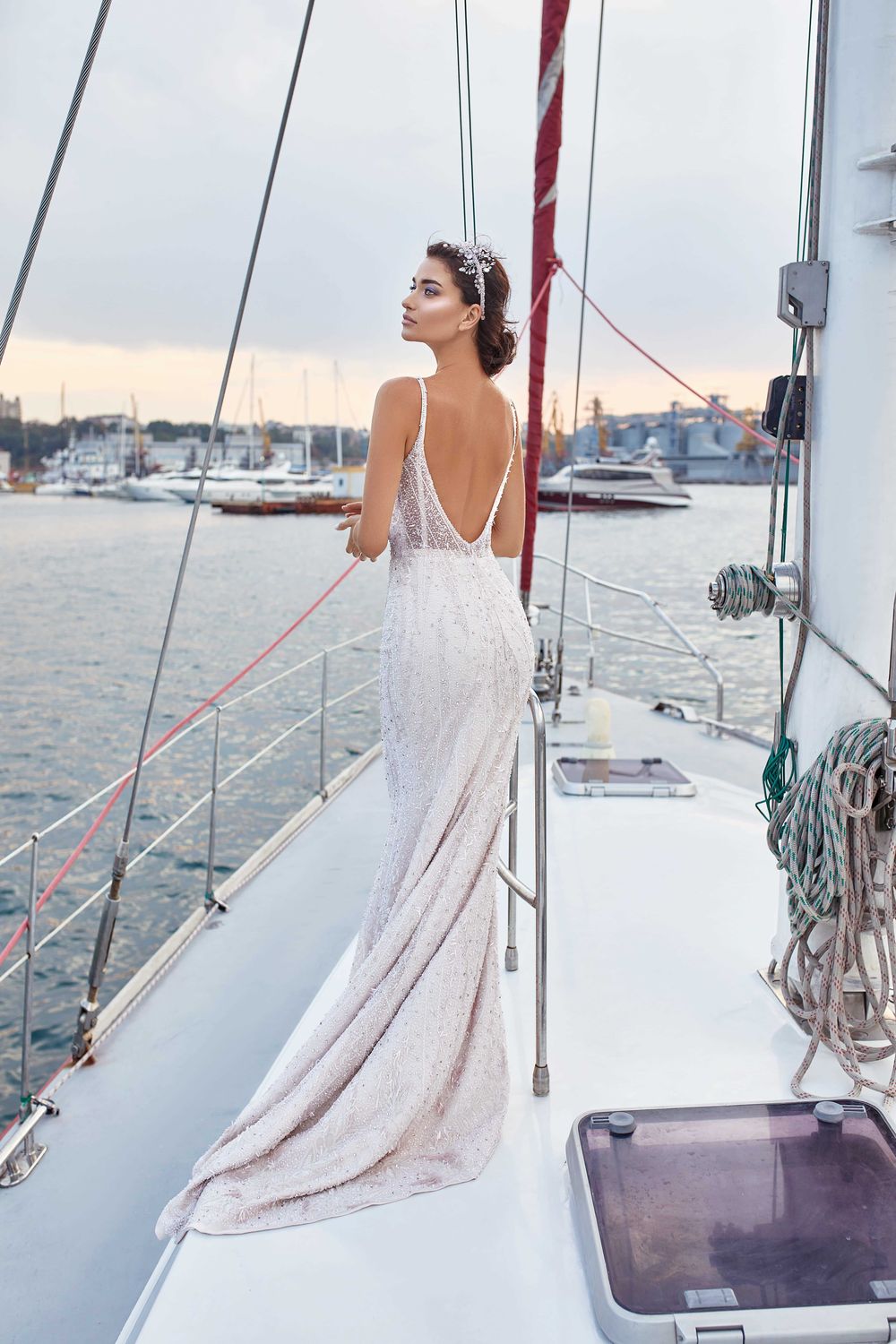 An exclusive fabric and the most understandable cut complements a removable train skirt. A dress that speaks for itself