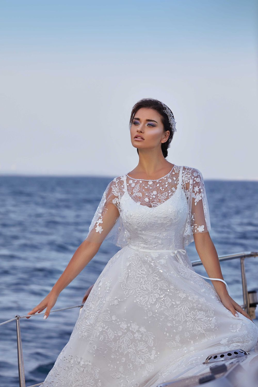 A comfortable dress with a T-shirt at the base, a floral pattern throughout the product and an accent at the waist in the form of a thin satin belt