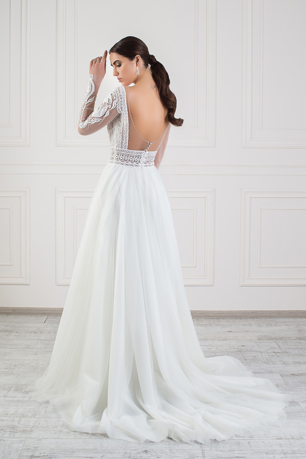 A wonderful option for a wedding style of Boho with matte lace with a touch of retro style