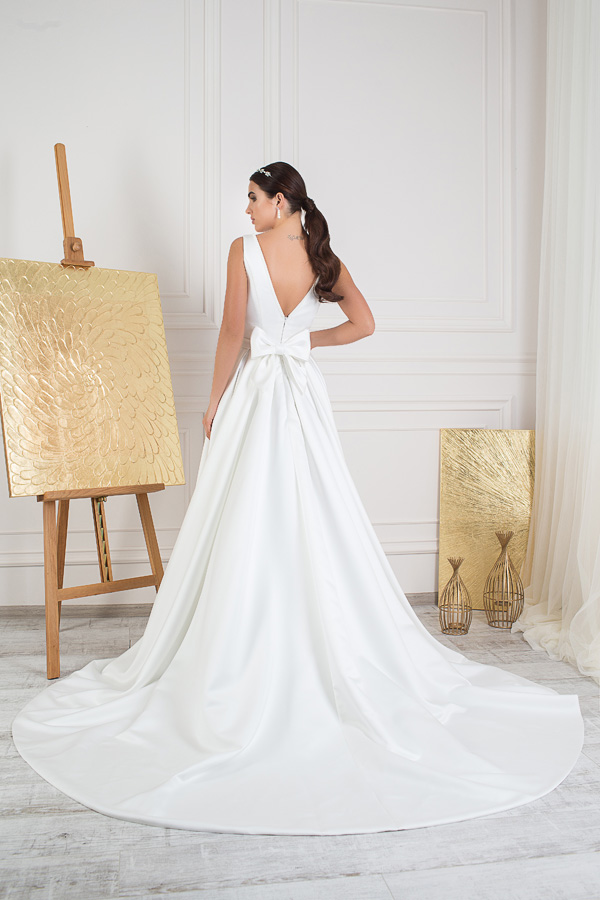 The noble satin will never leave indifferent brides of any generation. The V-neckline on the front and back will help to feel all the elegance and the voluminous and humility