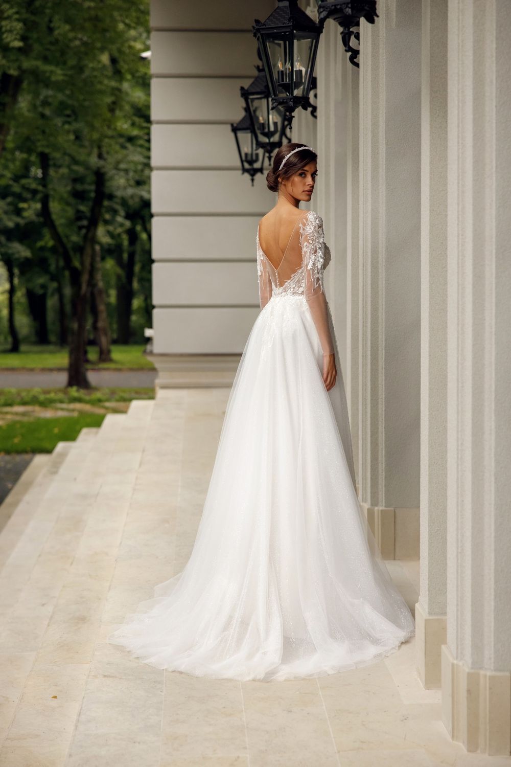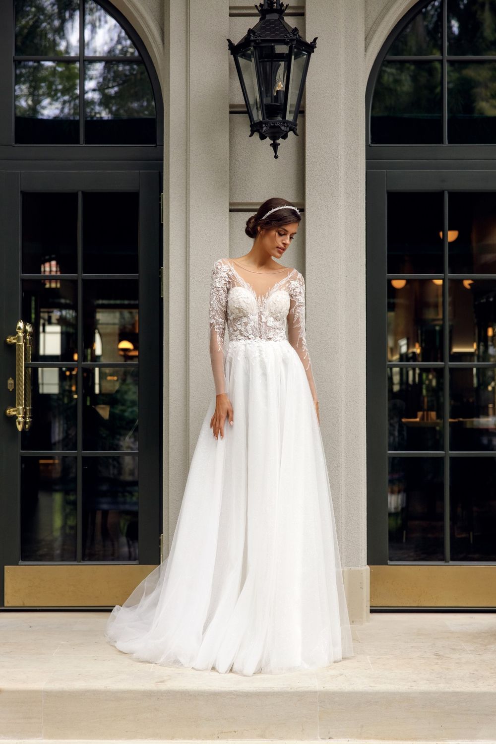 classic wedding dress with an accent on a lace top and a light skirt made of