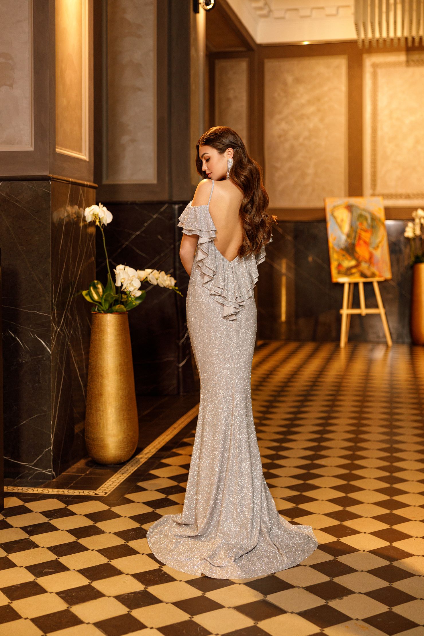 The perfect silver dress with an open back
